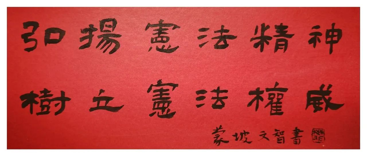 为大力弘扬宪法精神,维护宪法权威,扎实推动法治宣传教育深入开展,提升全民法律素质,近日,致公党周村区基层委员会联合淄博萤火团队开展“12·4国家宪法日”法治书画笔会活动。 活动中,书法家们挥毫泼墨,笔墨抒情,笔迹苍劲有力,笔法洒脱自如,将一幅幅以宪法为主题的书法精品展现在大家面前,将法治文化与传统文化相统一,将法治与艺术相融合,从不同视角、以不同形式展示了对宪法的尊崇,让群众在法治文化中领悟宪法的法律的精神内涵。书法家们与在场的党员、志愿者共同探讨书法艺术、感悟法治理念,既传播了宪法知识,又弘扬了宪法精神,增强了法治宣传教育的亲和力和感染力,使大家在潜移默化中感受法治文化的熏陶。 此次活动借助“文化+普法”的方式,以高雅艺术为载体,将传统书法与法治宣传教育紧密结合,寓教于乐,让宪法精神和法治理念进一步融入群众生活,切实增强了群众的学法用法热情,营造起浓厚的法治氛围。 |