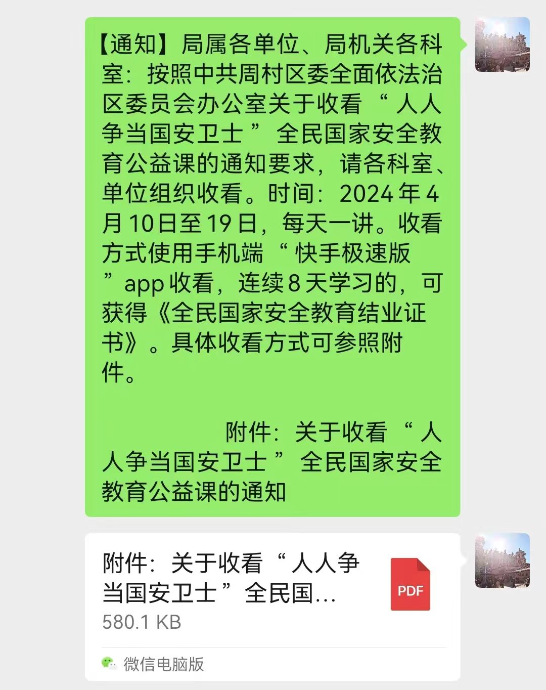 为推动国家安全法治宣传教育工作走深走实,进一步增强人民群众的国家安全意识和法治意识,近日,周村区交通运输局采用“阵地+网络”宣传模式,开展形式多样的主题宣传教育活动。 区交通运输局在机关办公场所利用电子显示屏滚动播放国家安全宣传标语,引导广大干部职工树立国家安全的政治意识,增强维护国家安全、人民安全的责任感和使命感。同时,普法志愿者走进社区,向群众发放国家安全宣传资料,用通俗易懂的语言讲解《国家安全法》等法律法规知识,广泛普及公民维护国家安全是应尽的义务等,教育引导群众自觉抵制危害国家安全和社会稳定的言行,为新时代国家安全贡献力量。 此外,区交通运输局借助网络线上开展宣传活动,加大普法力度。积极下发通知动员局机关干部职工收看“人人争当国安卫士”全民国家安全教育公益课,依托“中国普法”微信公众号和“学习强国”平台,使国家安全法律法规知识答题成为每日必修课,夯实机关干部忠实践行总体国家安全观、坚决维护国家安全的思想认识。 主题宣传教育活动的开展有效激发了干部群众参与维护国家安全的积极性和主动性,营造出共筑国家安全屏障的浓厚氛围,对维护辖区安定和谐具有积极推动作用。 |