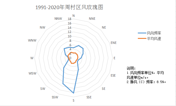 (四)风向和风力。历年主导风向为南风,风向频率为16.2%。年平均风速2.3米/秒,年最大风速16.6米/秒。(历年风玫瑰图见附图)