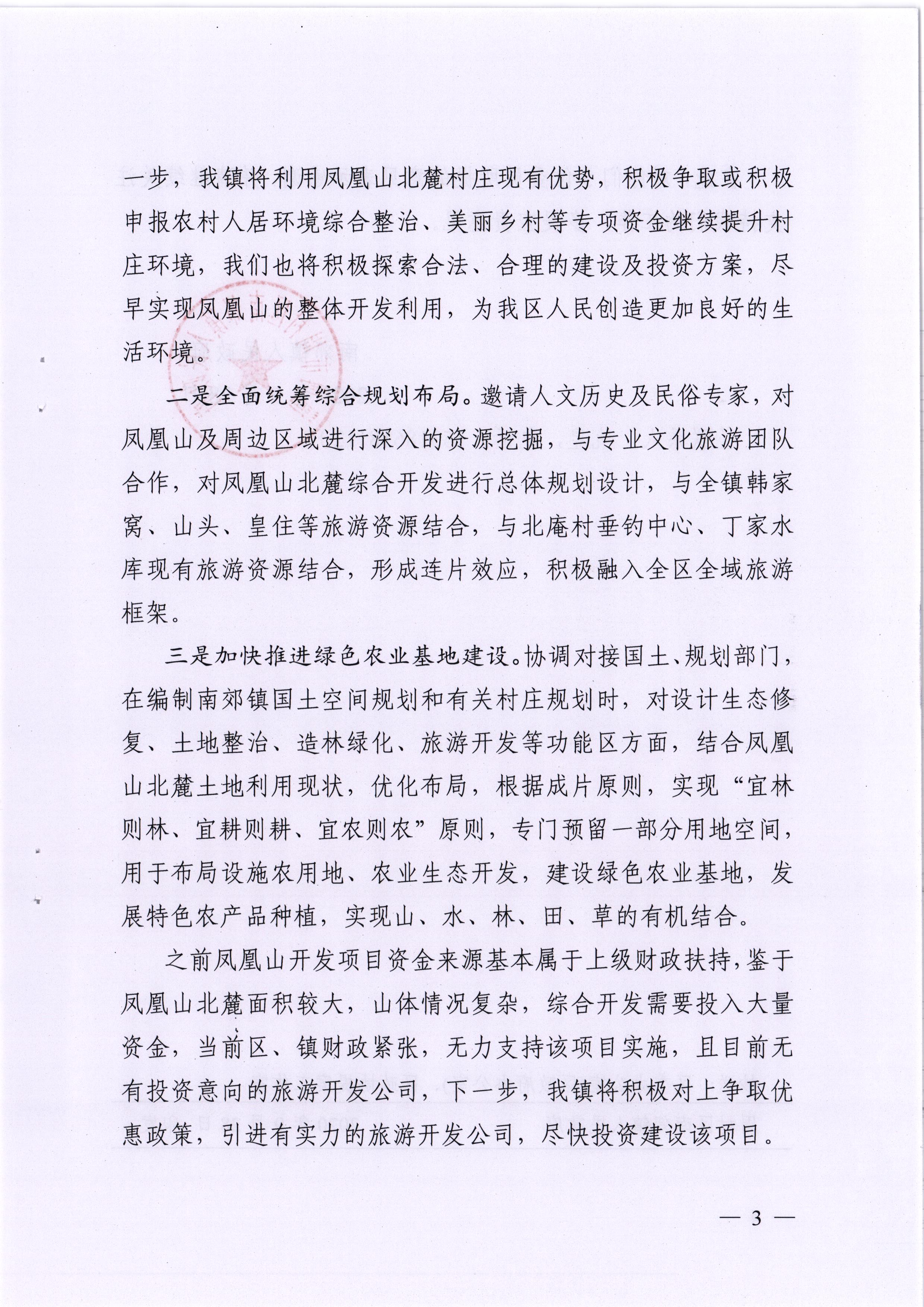 关于区政协十三届四次会议第134120号提案的答复(关于对凤凰山北麓进行综合开发的建议)