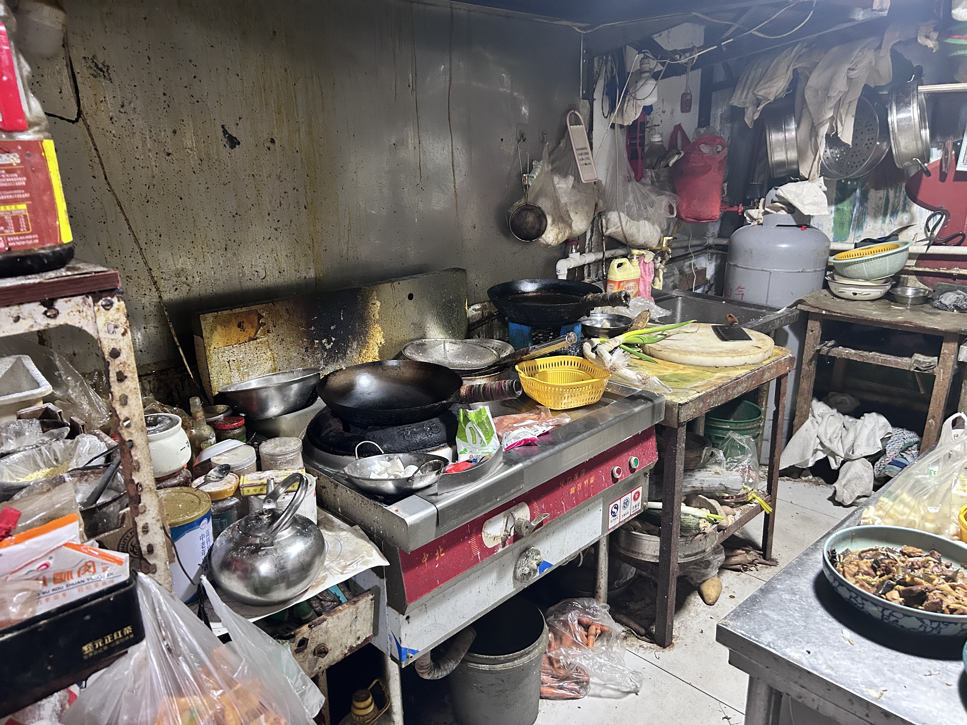 1.加工间卫生脏乱差,灶台油污多,地面垃圾多未及时清理;