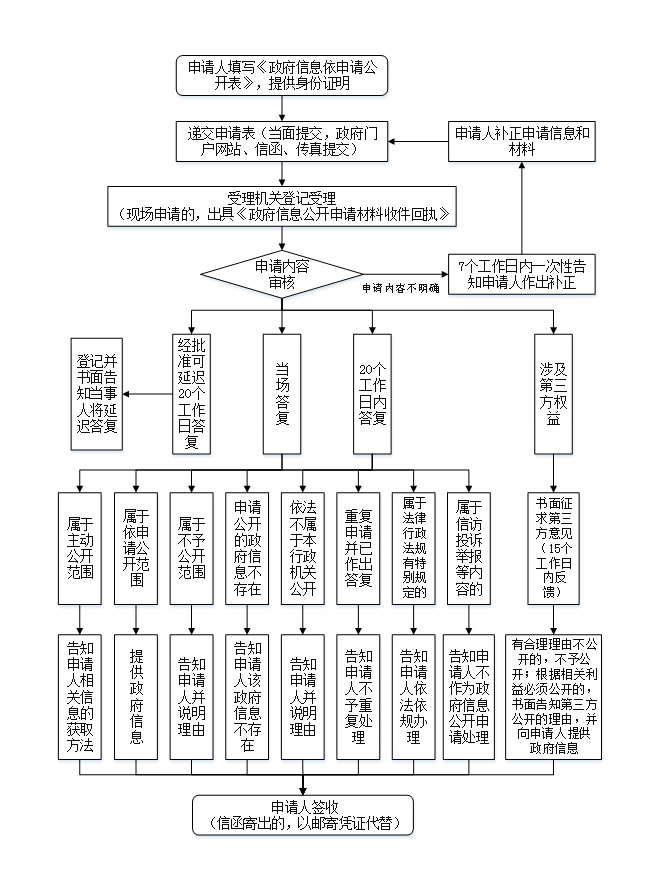 对申请人提出的政府信息公开申请,本机关将根据不同情况分别作出答复,详见《周村区政府信息公开申请流程图》(见附件2)。