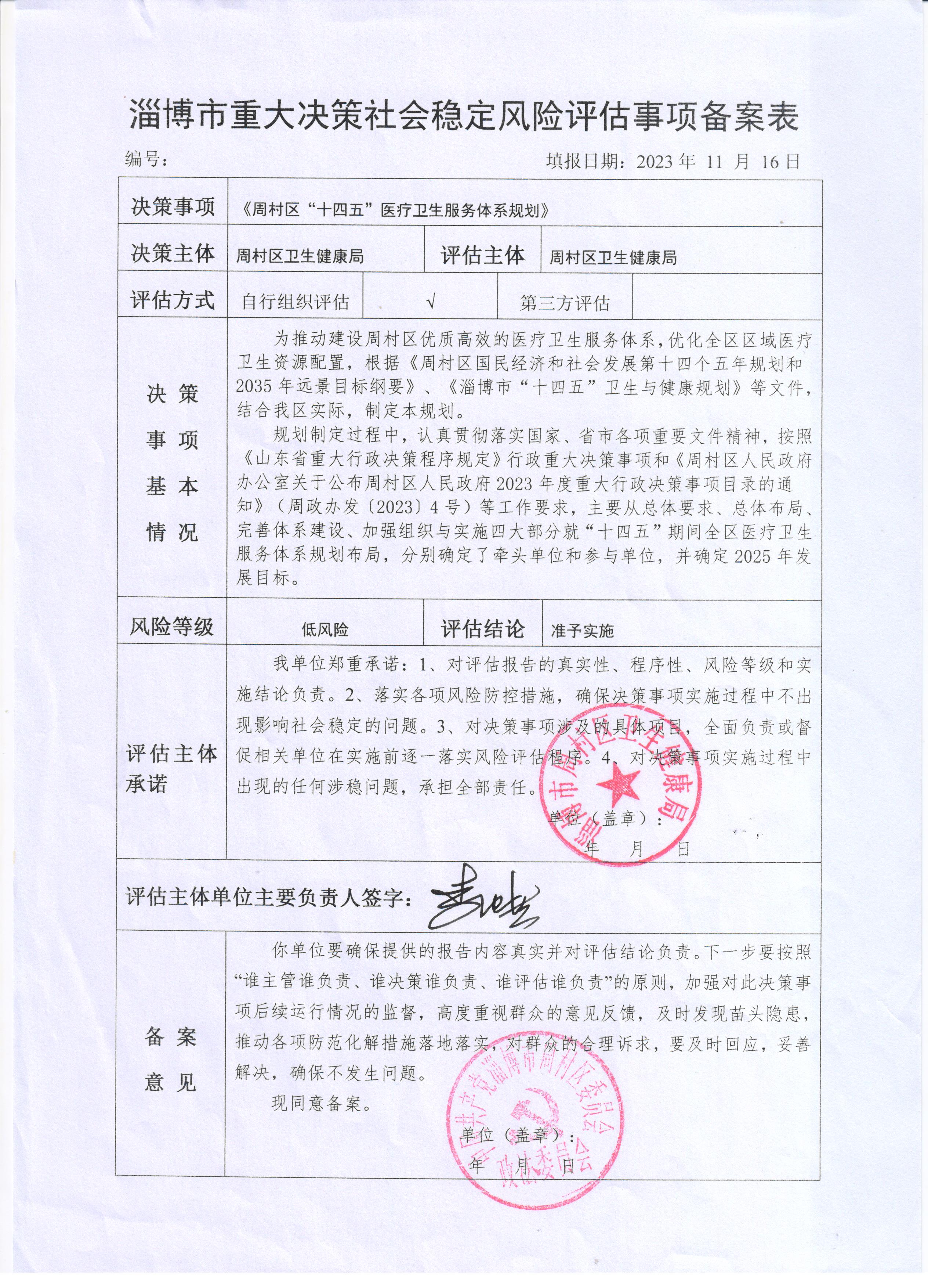 《周村区“十四五”医疗卫生服务体系规划》风险评估