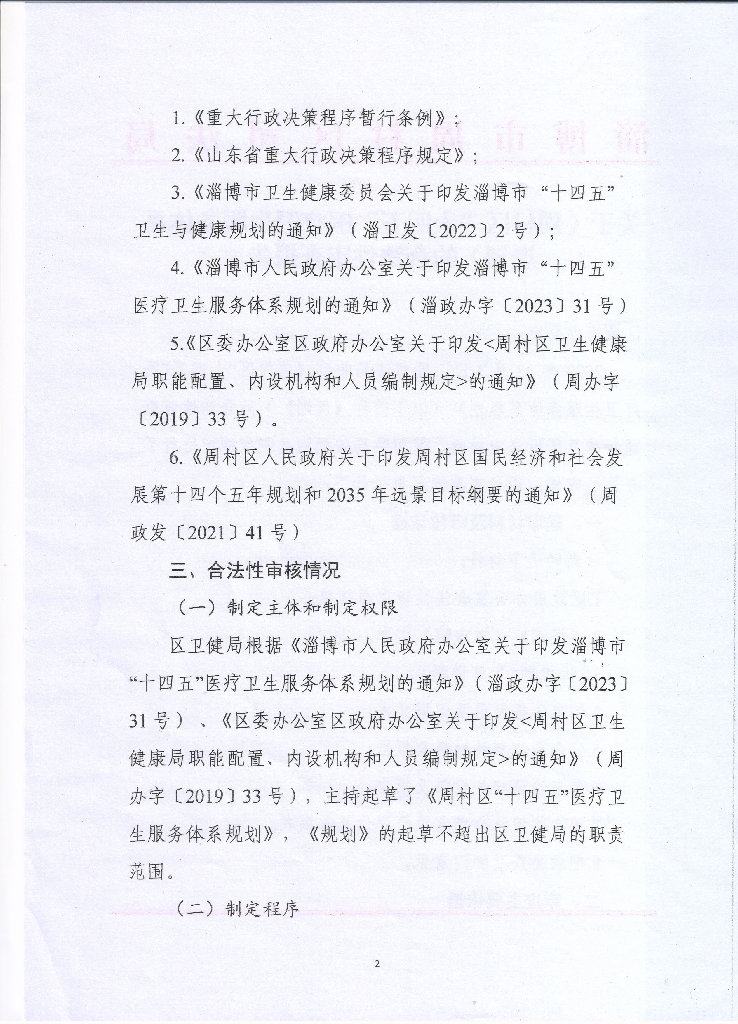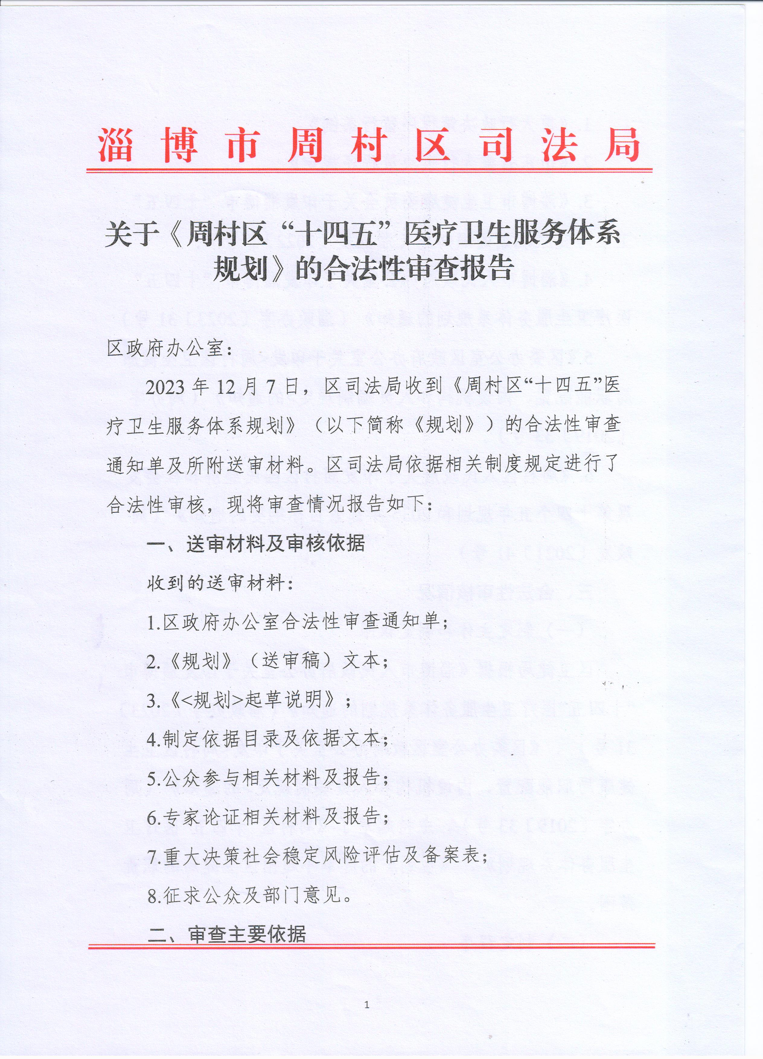 《周村区“十四五”医疗卫生服务体系规划》合法性审查