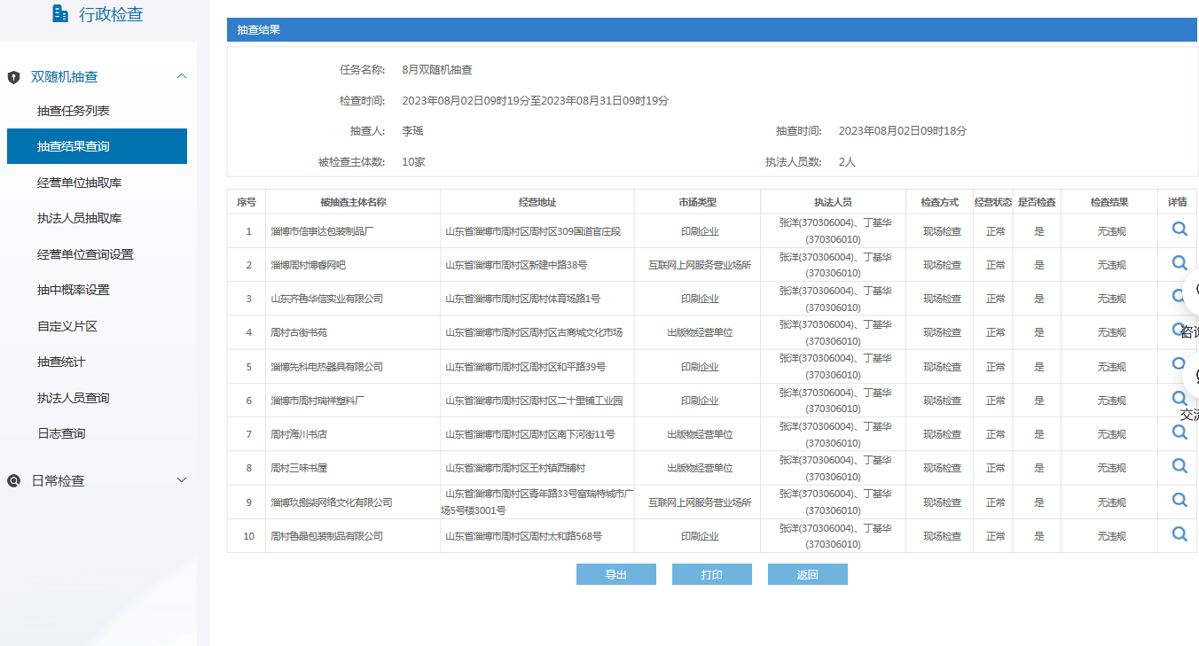 周村区文化和旅游局2023年6月“双随机、一公开”抽查结果