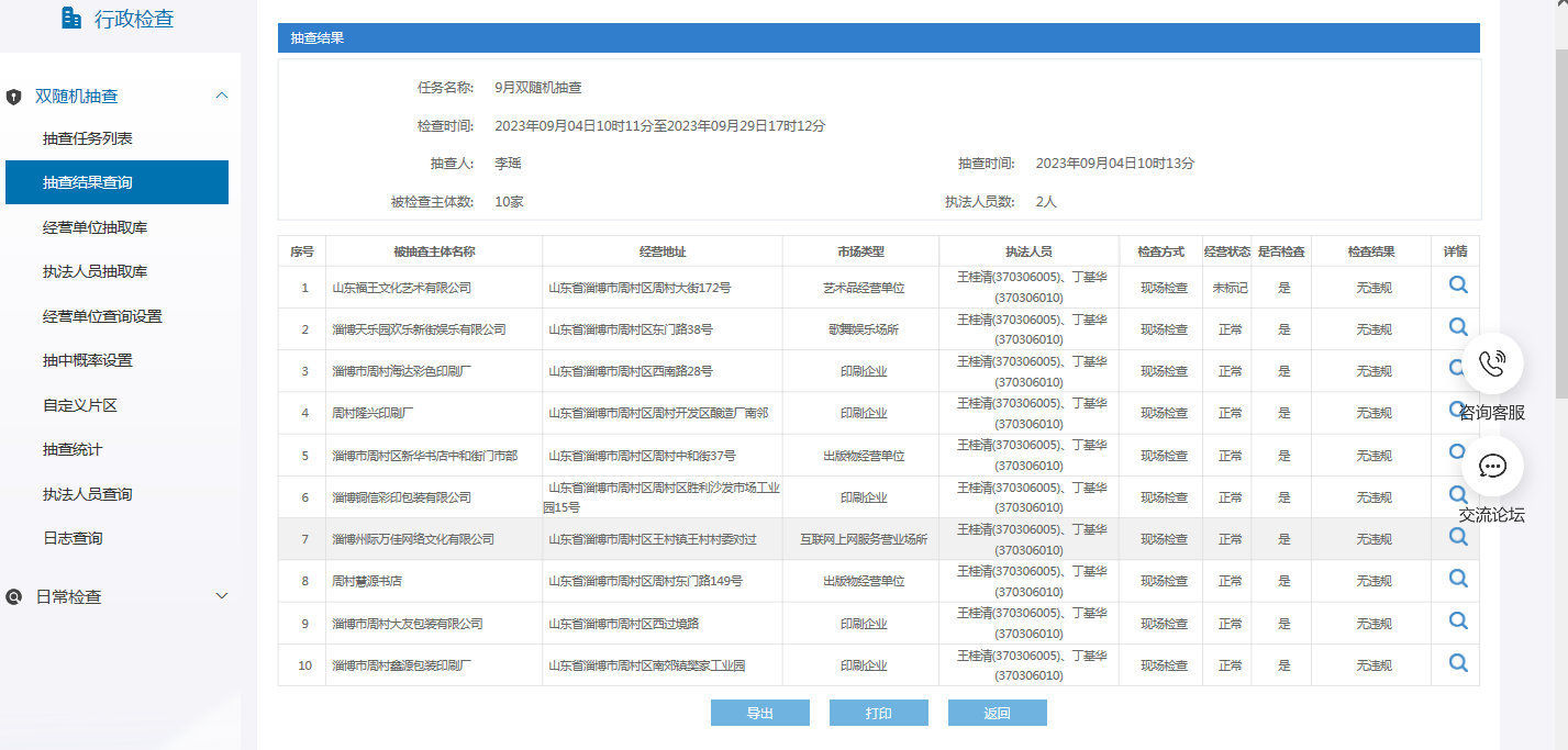周村区文化和旅游局2023年9月“双随机、一公开”抽查结果