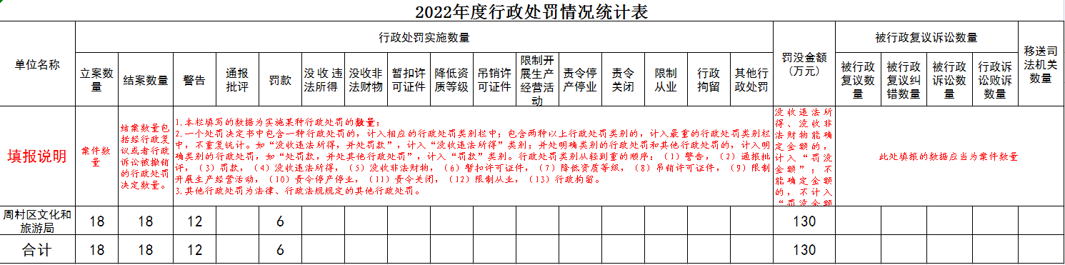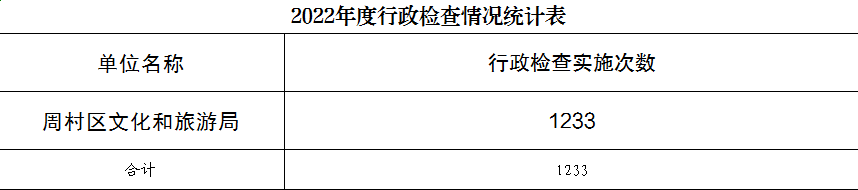 周村区文化和旅游局2022年行政执法年度数据统计表